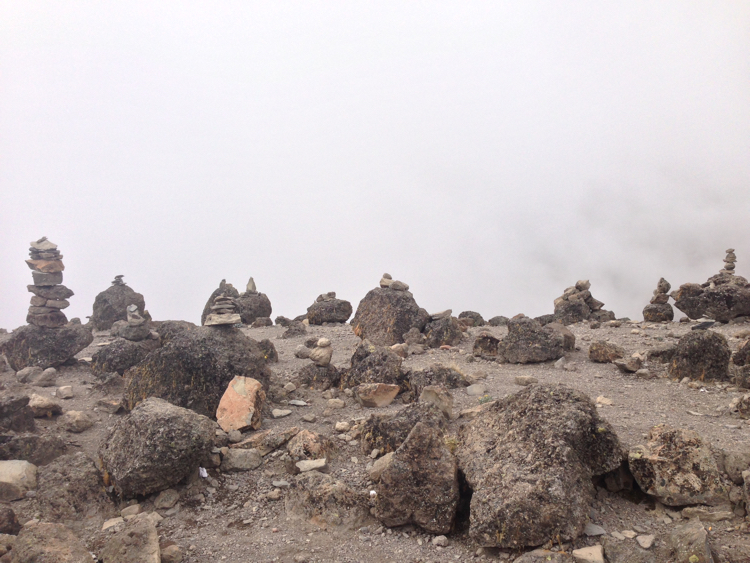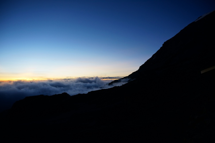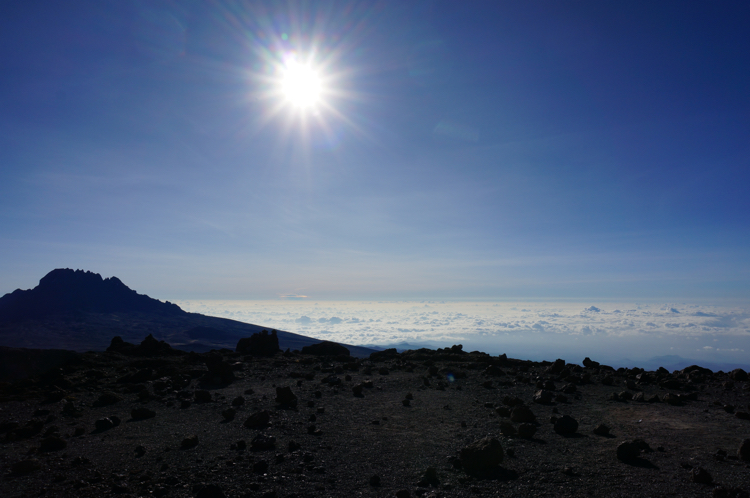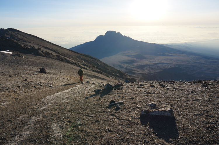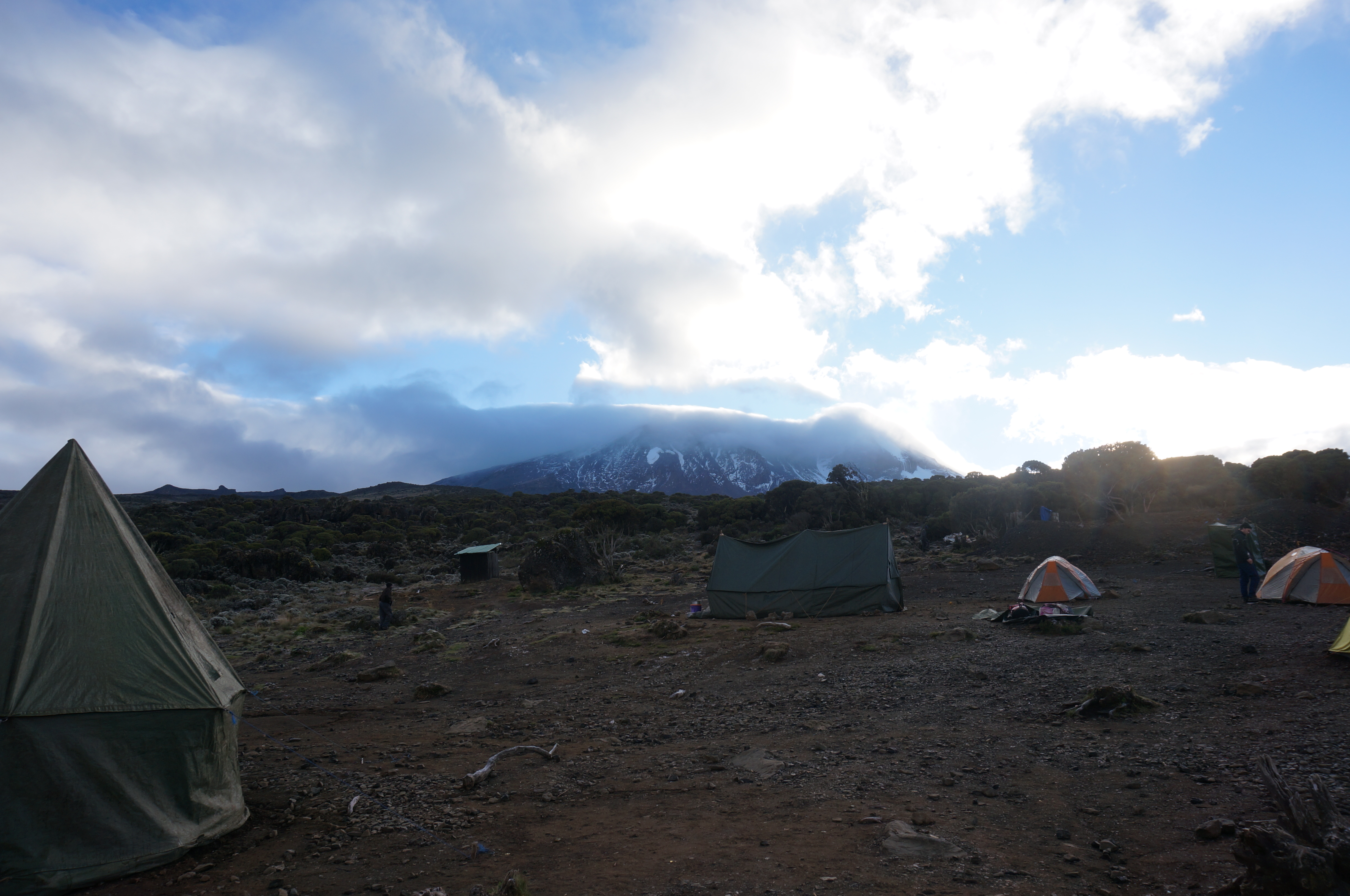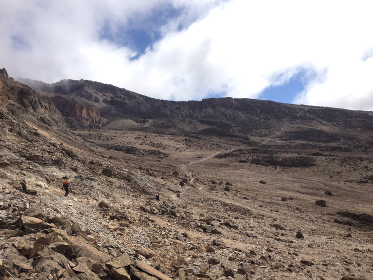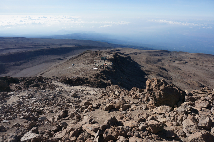 Tag 5 (14.12.2014): Barfu Heute steht nur ein kurzes Stück auf dem Plan, lediglich 3,4 km um 600 m Höhe zu überwinden. Somit bleibt genügend Zeit um früh in das Bett zu gehen, denn kommender Nacht werden wir bereits gegen Mitternacht aufbrechen und versuchen den Gipfel des Kibo zu erreichen. Der Weg ist bei weiten nicht so interessant wie die Tage zuvor, eine reine Schutt- und Gerölllandschaft. Im Lager angekommen habe ich das erste mal seit Beginn der Reise wieder Gelegenheit deutsch zu sprechen. Uns begegnet eine deutschsprachige Gruppe die gerade vom Gipfel kommt. Die Gesichter wirken ausgebrannt, die Blicke leer. Im kurzen Gespräch erfahre ich, dass trotz der intensive Akklimatisierung einer achttägigen Tour (und damit noch einen Tag mehr als wir) nur 6 von 12 Aspiranten den Gipfel erreichen konnten. Vier wurden schwer Höhenkrank, zwei weitere mussten aufgrund einer Mischung aus Erschöpfung und milderer Form der Höhenkrankheit abbrechen. Damit kam die Gruppe auf eine Ausfallquote von 50%, dem was auch die Wikipedia als Erfolgsquote angibt. Keine guten Vorzeichen für morgen ... Die kurze Nacht auf über 4.600 m kann ich kaum schlafen. Mir macht die Höhe nun immer mehr zu schaffen. Ich leide unter Atemnot, muss mit einer viel höheren Frequenz atmen wie ich es sonst tue. So wache ich oft auf weil ich keine Luft mehr bekomme. |