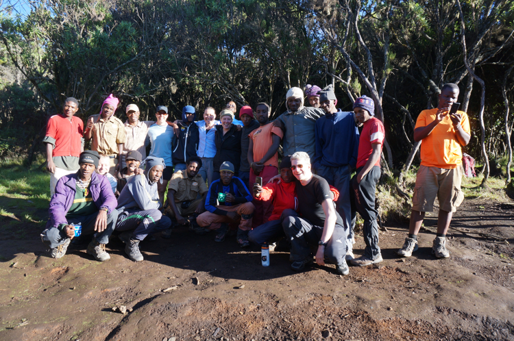 | Bild 7.2 Ein Großteil unserer 31 Kopf großen Gruppen. (Aufgenommen im Mwenka Camp; 3068 m; 07:41 Uhr) |